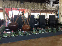Питание: если приходить к концу завтрака или обеда, то шведский стол пустеет, свежевыжатых соков и фруктов почти не остается. Еда разнообразная, на любой вкус – много овощей, зелени, мясных блюд, салатов, нарезок, несколько видов сыра, колбас и ветчины, по утрам йогурты, горячий шоколад, каши, морепродуктов маловато, большой выбор хлебобулочных изделий, сладостей, фруктов, как консервированных, термически обработанных, так и свежих, делали омлеты, пиццы по вкусу, гамбургеры, и прочее. Напитки выше всяких похвал – в барах большой выбор алкоголя, коктейли очень вкусные. Всего насчитали 4 бара на территории. Также 6 или 7 ресторанов аля карт, посвященные кухням разных стран – американская, итальянская, мексиканская, испанская, работают по вечерам, записываться заранее не надо, просто приходишь и если есть места, то приглашают сразу, если нет – здесь же возле них можно посидеть за коваными столиками, посмотреть на представление напротив лобби, покурить (кстати, курение разрешено везде) или выпить кофе (в кофейне на территории варили очень вкусный и разнообразный, там же были сладости и торты). Спортбар работал круглосуточно, это особенно ценно во время отъезда на ранние экскурсии в 6 утра. Все рестораны аля карт хорошие, но больше остальных понравился американский – попробуйте в нем ребрышки под соусом.