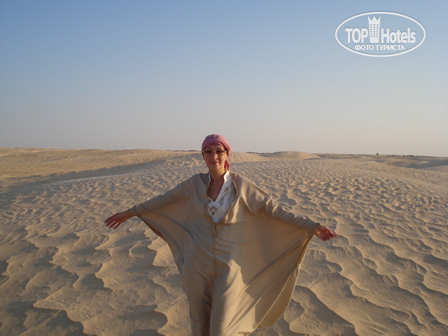 В первый день посмотрели город Эль Джем с амфитеатром,дома берберов.Берберы-это люди,живущие под землей в пустыне.Днем был обед-он включен в стоимость.На обед-пирожек национальный с салатом и кус-кус.Оригинально.Правда напитки на протяжении всей экскурсии платные.Бутылка колы 1,5 динара.Вечером катание на верблюдах по приезде в отель.