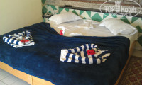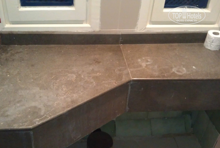 Через несколько дней проживания в номере, телевизор выпал из стены ни с того ни с сего!!! Хорошо, что в этот момент мы были в номере и, услышав треск стены, подставили стул с одеялом к телевизору, на который он благополучно и отпал. Обратились на ресепшн, после чего все вернули на свои места. Несколько раз ломался входной замок, сначала размагнитилась карта, что поправили на ресепшн в две минуты, потом вышла из строя электронная «начинка» в двери и починка заняла уже достаточно много времени, даже пришлось оставить номер открытым, т.к. мы планировали ехать в город. Кондиционер тоже радовал не долго: при включении раздавался ужасный запах канализации, но так как нам надоело уже бегать на ресепшн, мы перестали его включать и открывали окна. Ванная комната – это один сплошной минус! Пробка в раковине не работала: из-за нее плохо уходила вода, но вынуть ее оказалось невозможно, т.к. из трубы очень плохо пахло! Ванная желтая от времени и со следами чужих грязных ног, засоренный слив не спускал воду! Все смесители и душ были в белом и зеленом налете, неприятно было прикасаться! Шторка до половины заросла черным грибком и воняла плесенью! Плитка на полу местами сколота! Унитаз при смывании гудел как пароходная сирена, и к тому же подтекал! Полотенца, хоть и очень пахли хлоркой, были в разводах и пятнах различных цветов и размеров! А пляжные полотенца вообще до половины распущенные, дырявые и не простиранные!
