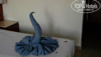 Номера: дали номер на 3-м этаже с потрясающим видом на основное здание, бассейны, фонтаны у лобби и море. Сразу же принесли «комплимент» от отеля в виде тарелки яблок и шоколад. Номер среднего размера, уютный и чистый. Минибар наполняется 1 раз по приезду безалкогольными напитками. Есть чайник и набор для чая и кофе, который регулярно пополняется. В номере 2 большие кровати, сейф, нормальная сантехника, зеркала, шкафы для одежды, 2 кресла и столик, в общем, для нормального отдыха есть все условия. Халатов и тапочек нет, но это не мешает хорошо отдохнуть. На балконе 2 кресла и столик. Звукоизоляция с коридором очень слабая, слышно все. Уборщик работал добросовестно, кроме того регулярно баловал «полотенечным креативом». Мы в свою очередь старались ежедневно благодарить его чаевыми за усердие.