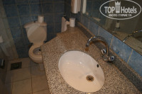 Кран на раковине шатался, вода из бочка текла не переставая, сантехника вся в ужасном состоянии. Фен вообще страшно в руки взять. Один раз задавила таракана. Жуть.