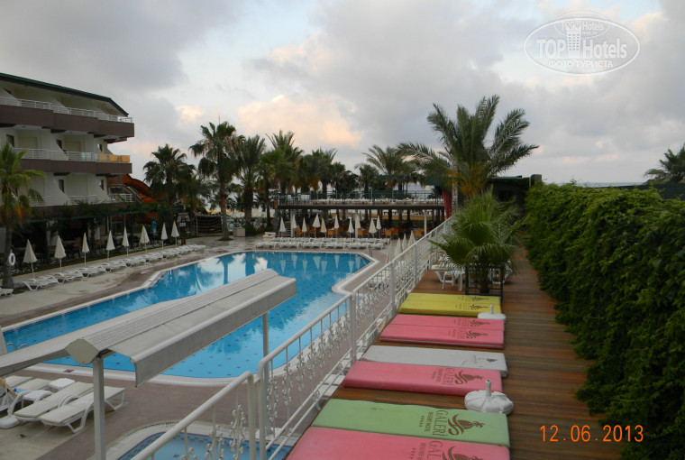 Выбирали отель по отзывам. По приезду в 20:00 заселили в семейный номер, хотя оплачен был стандартный, без дополнительной платы ,т. к. других свободных номеров не было. Гид отельный от Пегаса почти не появлялся, путевки не купили, значит с нас и взять нечего. Общие впечатления нормальные, но русских в этом отеле не любят официанты, перед немцами стелятся, русских как будто не слышат, чаевые не меняют положения.