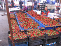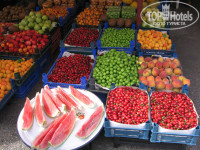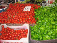 Очень советую съездить в понедельник в МАНАВГАТ. Там будет большой базар. Вернее одежда там всегда есть, а вот фрукты-овощи у них кочуют… Изобилие просто поражает..да и цены нормальные. Килограмм черешни стоил 3 доллара, дыни по одному… а сколько томатов!!! Добраться можно на маршрутке, кот. курсирует через пять минут, остановка чуть ниже отеля. Сначала машинка заезжает в Сиде, затем едет в Манавгат.