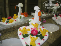 А насчет того, что обед накрывают у бассейна, так это считаю правильным. Основной ресторан в отеле очень красивый, с шикарными стульями и безупречно чистой посудой… Утром и вечером народ одевается согласно дресс-коду, а в обед все ходят в купальниках… и разреши туристам обедать в основном ресторане, так ведь и попрутся туда с мокрыми задницами и полуголые… а так очень даже удобно – можно прямо с пляжа зайти на обед… ассортимент блюд нормальный, надо только правильно всё разглядеть, там напротив основных блюд есть ещё стол на котором и мяса полно, и пюре вкусное всегда есть и много чего ещё..