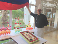 Должна признаться, что администрации отеля удалось создать совершенно уникальную доброжелательную семейную обстановку. Примером тому служит еженедельный совместный фуршет администрации и гостей в фойе отеля с фирменными коктейлями, на который приглашаются все гости вместе с детьми, для которых специально готовятся безалкогольные напитки. Мы были очень тронуты, когда в день Победы, 9 мая, администрация отеля поздравила русскоязычных гостей великолепным тортом, украшенным георгиевской лентой.