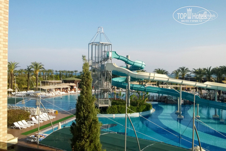 Внешне отель выглядит очень даже прилично и вполне может претендовать на 5 турецких звезд: симпатичные корпуса, отличная, большая, красивая, ухоженная территория, новые лежаки (на них сбоку даже наклейки с фирмой производителем ещё не отклеились), чистые большие бассейны.