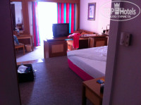 У нас были номера 2216 и 2225 на третьем (последнем) этаже в корпусе, который очень удачно расположен между главным рестораном и главным бассейном. В корпусе есть лифт, так что третий этаж это очень хорошо (никто не топает сверху). В корпусе жили и русские и англичане. Заселили нас сразу по прибытии , без доплат и взяток, хотя прибыли мы часов в 10-11 утра. Багаж ждали ну о-о-очень долго! Номера так себе - на троечку: обои и потолочные плинтусы поклеены кое-как, стул и диван прожженные, ковёр тоже, на ротанговой дверце шкафа жирное пятно и т.д. Телек допотопный не ЖК и диагональ, наверное, 14 дюймов, показывает плохо. В санузле унитаз со встроенным биде, умывальник на большой тумбе с отделкой из ротанга и ванная - джакузи (на мой вкус лучше бы был душ). В ванную мы не ложились, джакузи, соответственно, не включали. В номерах есть центральный кондиционер с индивидуальной регулировкой. Постельное белье достаточно новое и регулярно меняется, уборка в номере каждый день, правда, не очень тщательная, но нас это совершенно не напрягало мы ж не за горничными следить приехали)). В одном номере всё работало и не ломалось, В другом номере 2 раза выходил из строя телевизор, но его довольно быстро чинили. Несколько раз на этаже и в номерах вырубалось электричество. Решали проблему после звонка на ресепшен примерно в течение 30 минут. Что понравилось в номере - это балкон)). Он просторный, есть сушилка для белья. Нижняя фронтальная часть балкона застеклена темными стеклами. Мебель на балконе пластиковая, приятного светло-коричневого цвета.