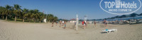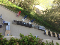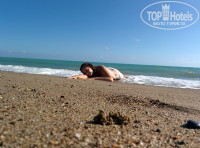 В целом отель скромный, без богатых убранств, кожаных диванов в фойе… Здание не новое. Лифты медленные и душные. Чисто. Все работает. Персонал приветливый. Территория небольшая, красивая и компактная, переходит в пляж. На пляже крупный песок, заход в море – галька, метра через три резко глубоко. Лежаков, матрасов, что на пляже, что у бассейна хватало. Конец апреля, начало мая вода была прохладной +20…210С, но мы купались. Еще бы я порекомендовала тапочки для плавания. В воде камни острые, мне было больно заходить в воду.