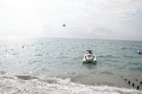 Пляж конечно маловат, но лежаков хватало, наверно потому, что еще только середина мая, думаю летом будет напряжно найти свободное место на пляже, вход в море тоже сложноват крупная галька, но мы привыкли, массаж ног. Мы с дочкой ходили на пирс пятерошного отеля справа, но в последний день нас оттуда попросили, объяснив, что пирс только для отдыхающих данного отеля, но мы и не расстроились на нашем пляже было достаточно место.