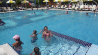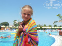 До пляжа 200 м, но это скорее плюс, чем минус, по дороге на пляж можно кормить черепах. Кухня хорошая, в Турецком ресторане отлично кормят, просто обалденный суп из чечевицы. Номер не большой, но уютный, уборка каждый день. Я отдыхала с дочкой, для детей отличный заход в море, на что я собственно и ориентировалась при выборе отеля, пляж песок. Лежаков у бассейна всегда хватало. Для детей не плохая анимация. Отдыхать с ребёнком самое то, тихо, спокойно. Нам понравилось.