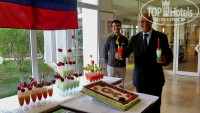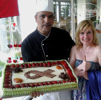 Далее нас ждал ресторан. Европейская кухня. Для самого капризного туриста . Никаких очередей. Всегда несколько видов мяса, рыбы, гарниров (чудное брокколи в кляре), салаты. Очень вкусное вино! Изобилие десертов. Но, особенно, впечатлили горячие блинчики с шоколадом на завтрак! Сочные апельсины, сказочная клубника, персики абрикосы! Каждый день мы пробовали что-то новое! Хочу сказать, что шеф-повар – отличный мастер своего дела! Он при каждой встрече в ресторане интересовался, все ли нам нравиться!? Официанты отзывчивые, понимают по-английски. На День Победы перед ужином русским гостям отеля устроили поздравление с огромным тортом и коктейлями. Управляющий лично поздравлял гостей. Он вообще очень приветливый! При встречах уточнял, все ли устраивает, есть ли вопросы к нему(приветствовал всегда по-русски).