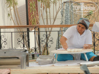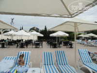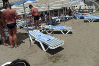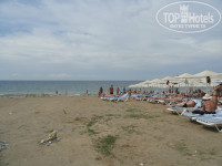 Были вкусные лепешки у бассейна и типа пиццы на пляже. ПЛЯЖ!!!!! это капец. Шизлонги узкие, матрасы обтянутые в мешки их под сахара, в бело-синюю полоску. Пляж грязный и очень маленький, ширина примерно метров 7-10. Зонты не собираются, стоят всегда раскрытые, покрашены в белую краску, кое где проступает ржавчина. Рядом заброшенная территория,выглядит как помойка. Там можно было сделать сетку для волейбола. Еда на пляже гамбургеры , овощи и те лепешки , что я писала ранее, похожие на пиццу. Фруктов не было ни разу.