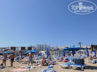 Пляж очень чистый, вода нереально прозрачная, чистейший песок, ни одного камешка. Очень пологий вход в море, для детишек просто рай. Правда шезлонги и лежаки по 2.5 евро. Но у отеля есть небольшой бассейн с бесплатными лежаками и зонтиками. Многие из жителей отеля( и мы в том числе) лежали и загорали у бассейна , а купаться ходили на море.