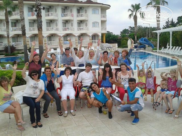 Путешествие понравилось. По перелету, трансферу, размещению в отеле, питанию, досугу, экскурсиям никаких претензий. Все супер. Выискивать недостатки и придираться к мелочам– не в моём характере. Когда уезжаю в отпуск, беру только хорошее настроение с собой. Отель соответствует своей категории. География его расположения великолепная. Близость гор и моря– это супер! Территория поселка Чамьювы чистая, зелени много! Сейчас много цветущих растений. Апельсины, лимоны спеют на деревьях! Питание вполне нормальное. Много свежих овощей, зелени! Диетическое мясо курицы ежедневно. Это то, что нужно! Не понимаю тех людей, которые водят хороводы вокруг столов, не зная что поесть!!! Лопают картошку фри, макароны и сладости! Пьют растворимые соки юппи, пепси, фанту, спрайт... Потом удивляются, почему возвращаются из отпуска закабаневшими тушками... Мы отдыхали активно. Ездили на экскурсии: Демре– Мира– Кекова; Памукалле; рафтинг; хамам, шоппинг в Кемере, ездили на дискотеку в Кемер, гоняли по Чамьюве на трехколесном мопеде. Купались в море, загорали– не без этого!! Вода в море вполне теплая! Персонал отеля вполне сносно изъясняется на русском. Аниматоры работают отлично! Не дают скучать тем, кто не предпочитает тухнуть в номере и вялиться на пляже. Жаль, что среди соотечественников много пассивных людей, которых невозможно растормошить! Хочется отметить аниматоров Карена, Инну, Арчи, Онура. Дружная и отзывчивая команда!