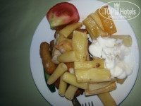 В столовке гигантские очереди, первые 4 дня (либо отель не был полностью заселен или турки обнаглели) на ужин давали только курицу на гриле, картошку фри и макароны, на другой день печенку и макароны и так чередовалось. На завтрак две недели чередовались либо оладушки или полусырая яичница, никаких омлетов. На обед дают соевые жареные квадратики-полуфабрикаты с картошкой фри или макаронами, еще есть два супа если прийти к началу обеда, но они несъедобны, один очень острый, другой как морская вода с крахмалом. Через неделю отель был практически полностью заселен и очереди стали еще больше, но и еды немного прибавилось - нормальные десерты, говядина или курица на выбор, даже баранина была, но за этим нужно стоять пол часа в очереди и выдают всем по чуть чуть, один раз была шаурма, два раза жарили вонючую селедку, а на гарнир как и было макароны или фри, вкусный лаваш, и аджика, из фруктов апельсины (внешне неприглядного вида, но очень сочные и сладкие), яблоки, вкуснейшие арбузы только на ужин, изредка зеленые сливы и абрикосы, все моментально разбирают. В баре у бассейна отвратительный тухлый запах.