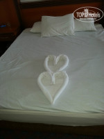 Отдыхали в отеле с 17 по 29 мая 14 года, вдвоем с мужем. По приезду в отель немного расстроились, тк ремонт там видимо не делался лет 20,одним словом совок. На ресепшен нас встретила русская девушка блондинка, которая попросила за хороший номер 40 долларов. Карта от номера на двоих только одна и никак иначе, причем выглядит она очень потрепано, грязная, серо-черного цвета. Нам достался номер 455 – обычный стандарт, но рассчитан на троих человек, с хорошим видом на море и бассейн, древний телевизор, ужасно неудобные подушки, кровать маленькая, кондиционер работал, в ванной комнате только разбавленное жидкое мыло, так что лучше взять свой шампунь, много комаров, берите фумигатор, мы купили в магазинчике через дорогу за 10 баксов.