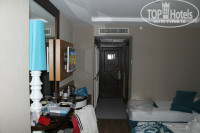 Отдыхали в отеле с 26 мая по 5 июня, летали с туроператором Санмар. Приехали в отель 14.30, заселили сразу, нас с семьёй с видом на соседний Crown Palace (мы в нем отдыхали в прошлом году), родственников с видом на стройку. На ресепшене девушка немного понимает русский язык. Кстати не смотря на то, что отель ориентирован на немцев, некоторые официанты стараются что-то говорить по-русски. Номера с видом на стройку более светлые, чем на соседний отель. Строителей за 10 дней слышали всего один раз, видимо на летний сезон стройка приостановлена. В номере все работало, телевизор с входом USB, можно смотреть свои видео файлы с флешнакопителя. В баре изначально две бутылки минеральной воды, одна 1,5 литровая бутылка обычной воды без газа, две колы и две фанты. В последующие дни пополняют минералку и обычную воду, иногда минеральную не клали. Wi-fi работал хорошо, нормально можно было пользоватся в номере и лобби, в главном ресторане сети не было. Как уже писали с лева от отеля стройка, спава отель Crown Palace, с тыльной стороны прилегает отель Orange Palace.