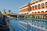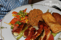 Питание качественное и вкусное, ориентированное преимущественно на немцев. Не скажу, что слишком разнообразное, видели и лучше. Чего не скажешь о сладком, очень вкусное и разнообразное, на обед и ужин не менее трех разных тортов и много всяких сладостей. Из фруктов и ягод: вкусные арбузы, черешня, апельсины, грейпфруты, сливы, клубника, дыня, яблоки зеленые и красные. Мороженое с 15.00 до 16.00 в баре у бассейна и вечером у бассейна, где жарят барбекю с 19.30 до 20.30. Из мясных блюд в различных вариациях курица и баранина, один раз были индейка, запечённый на вертеле баран. Ежедневно вкусная жареная рыба речная форель, скумбрия, раза два была треска в кляре. Из спиртного пили пиво и вино, они практически везде одинакового качества в Турции и раки, кстати советую в Турции в третий раз, а раки попробовал впервые. Приятно пьётся и на утро не болит голова (ну если конечно в меру пить). Коктейли тоже не сравнить с теми, что готовят в странах Карибского бассейна, ну это и понятно, в Турции везде так. Два ресторана аля-карт турецкий, и рыбный на пляже. Мы ходили в турецкий, тоже советую, хотя некоторые писали, что не стоит ходить. Однако нашей семье всем понравилось.