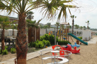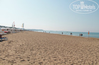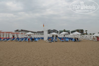 Отель находится на второй линии. До пляжа каждые 10 минут курсирует автобус без стекал (он же шатл). Расположение отеля нас абсолютно не напрягало, до пляжа ездили и на автобусе, ходили и пешком (10 минут средним темпом). Пляжная полоса района Эверенсеки, является одной из самых лучших в Сиде. Пляж у отеля свой, песчаный. Что нам особенно понравилось, так это пологой вход, сначала метра три до середины бедра, затем метров 10 по колено, еще метров 15 по пояс и потом постепенно глубина. На пляже снек-бар, часто на обед оставались там, все также как и в главном ресторане свежее вкусное. Как обычно у снек-бара женщина печёт вкусные гёзлеме. У входа на пляж небольшая детская площадка.