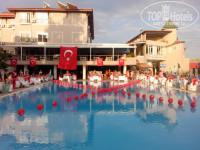 Всем добрый день! Отдыхали в отели вдвоем с мужем и ребенком 14 лет с 18 мая по 1 июня 2014 г. Приехали в отель рано, ждали заселения до 14 ч., выбрали корпус №3, так как там поспокойнее, без проблем дали номер в этот корпус. Хотя по приезду многое что шокировало, но мы решили сосредоточиваться на положительном и остались отдыхом довольны. Играли в волейбол, вечером ходили до Сиде по набережной, на дискотеку, общались и т.д Есть ходили не во время открытия, так как штурмовать не хотелось, приходили ближе к концу, всегда все доставалось. Если быть доброжелательной с официантами и обслуживающим персоналом, то и столик будет на веранде и красный арбуз и вкусные пирожные. На море лучше ходить к 7 утра, т. к тихо, хорошо, купаться слева от пирса, там чистый берег и ровный заход или прям с пирса прыгали. Около корпуса №3 продают экскурсионные туры. Многие бояться ездить не от туроператора, но мы сколько раз не летали в Турцию, всегда покупали и были довольны. Так что обращайтесь к Саше, надежный, веселый,хорошо знает русский язык, он нам порекомендовал и сауну с массажем, цены ниже чем в отели и туда и обратно на машине возят, так же ездили на рафтинг и на яхте. Всем остались довольны. Всем хорошего отдыха и положительных эмоций.