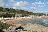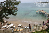 Пляж: пляж отеля – мизерный. В первой половине дня там тень. Лежаков на песке буквально по пальцам пересчитать. Остальные лежаки располагаются на выступах – огорожены стеклянными бордюрами. Зонтики есть не везде. Есть еще два пляжа, на которые можно ходить. Но они получаются на территории соседнего отеля Алара 4*. Один в бухте – небольшой. Большая часть лежаков на каменной платформе. Бухта уютная. Второй пляж большой – хороший, но на всех пляжах – не успел занять лежак до 8 утра – потом можешь остаться без лежака и без зонтика. Особенно без зонта! На наше замечание сотруднику пляжа – он сказал - да зонтов не хватает и послал нас к менеджеру отеля. Лежаки занимают начиная с 7 утра. Туристы приходят, бросают полотенца на лежаки и уходят в отель завтракать, досыпать и тд.