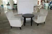 - в холле отеля стоит мягкая мебель - видимо когда то белого цвета. Химчистку скорее всего уже очень давно не делали. Может вообще никогда не делали – сейчас она вся потертая и грязная.