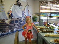 Еда достаточно разнообразная и вкусная. Ужины были разные: японская, китайская, турецкая и итальянская кухня (как и рестораны A la card). В центральном ресторане, где проходили завтраки и ужины, есть выделенная детская зона в виде пиратского корабля с детским столом и большой плазмой с мультфильмами. Обед и ланч проходил возле центрального бассейна, а также всегда можно было перехватить в чилаут баре, блинном доме или стейк ресторане. В это время года был огромный выбор ягод и фруктов: яблоки и груши разных сортов, клубника, черешня, дыни и арбузы, ананас, сливы и абрикосы, апельсины и грейпфруты, бананы и разный виноград, а также желтые ягоды, которые я так и не узнал как называются. За ужином разнообразие сладкого стола просто удивляло и радовало гурманов - сладкоежек.
