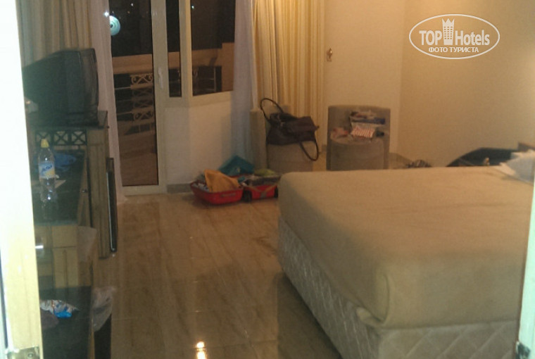 НОМЕРА: Номер у нас был фэмели, 2 комнаты, одна с двуспальной кроватью, в другой 2 односпальные и принесли еще одну дополнительную. Телевизор в каждой комнате, кондиционер тоже у каждого свой. 2 балкона. Душ, туалет один. Мыло, гель, шампунь есть. Бутылка воды одна 1,5 литра по приезду и всё. И то ее надо выпрашивать, иначе не дадут.