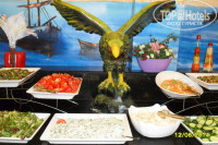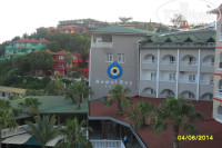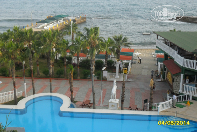 Отлет-прилет без задержек...Вполне приятные впечатления от пребывания в этом отеле...это конечно не 5 звезд что заявляет туроператор..но за деньги что уплачены даже вполне приличный.. То время что были в пути от аэропорта совсем нас не напрягло те два часа дороги быстро пробежали... заселение происходило тоже нормально...правда девушка которая нас регистрировала задала вопрос. Куда нас заселить ??? в хороший номер или ?? вот слово ИЛИ я не поняла... при этом резко ее оборвав сказала может и тот в который нас поселят нам понравится..моя же спутница решила выяснить сколько будет стоить хороший номер... та пожала плечами... раз нет конкретики.. говорю пойдем в номер...дайте ключи..нам стали навязывать провожающего...от него мы тоже отказались...что нас ожидало..прекрасный номер..габаритный 553 на 5 этаже с видом на море ..как раз напротив ступенек к морю... с балкона прекрасный пейзаж на десятки километров ..море пальмы... вообщем живопись !!!! уборка проводилась ежедневно.. смена полотенец..1.5 литра воды для питья..туалетная бумага..в первый же день успели искупаться в море... на второй на море штормило... и день выпал у нас полностью...У отеля прекрасный бассейн...есть даже укромные местечки под распадистым фикусом...правда ветки ему обрезали позже...лежачих мест всем хватало.. как у моря там и у бассейна... берег из мелкой гальки.. были намытые участки только из песка.. так что войти и выйти в море было беспроблемно...за что люблю средиземное море .. так за то что оно не холодное и не теплое..в самый раз...погода прекрасная... днем для загорания вечером и ночью -прохладно для нормального сна без кондиционеров...пишут в отзывах что еда однообразная.. но господа зато какой ассортимент вам...брынза порезанная квадратиками.. брынза порезанная ломтиками.....и т д...когда я на отдыхе при такой еде даже при перееданиии никаких проблем с желудком.. потому как много всякой зелени.....и прием пищи по расписанию... не сухомятные перекусывания... единственное хотелось супов почему то .. мы к ним приучены.. а вот здесь были подобия... но все равно же жидкие...и это радовало...попробовала напитки все... остановилась на пиве... вино красное и белое ближе к сухому... напитки сладкие - концентрат.. притарно-сладкий... кофе хоть написано много названий автомат выдает два--- с молоком и без...из фруктов постоянны арбуз и апельсин....на встречу с гидом не ходили. только сдали ваучеры для отметки на обратный путь...путевки на экскурсии покупали через дорогу ..там же комплекс услуг... ресторанчик магазин текстиля еще магазин с продуктами и продажа экскурсий... супруги говорят по русски спасибо им.. молодцы.. цены в два раза дешевле ..персонал плохо понимает русский видимо начинающие ..хотя 5 лет назад была в Кемере думала я из России. не выезжала....Вполне нормальная ненавязчивая анимация.... большая территория без границ на соседние отели ...гуляй не хочу... огорчило единственное отлет в ночь выезжали в 2 часа....приехала бы еще раз.. но хочется посмотреть остальные...
