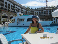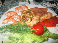 УЖИН. Также всё на высоте. По нашему приезду даже были бутербродики с икрой красной, правда потом уже не было, красная рыба "семга"соленая,копченная была не каждый вечер, но часто, креветки большие были, кальмары, в общем каждый вечер что то из морепродуктов было, на гриле жарят все: и перепела и индейка, рыба (форель речная, морской окунь ещё какая то местная, кажется "доррада"в названии могу ошибиться, но вкусная) мясо разное и тушенное и жаренное и на гриле и с овощами и ещё с чем то, котлеты, и были не только из баранины, но и из телятины думаю, не полуфабрикаты, случайно на кухню заглянула, когда оттуда блюда выносили повара, там фарш крутили сами, печенка была в разном приготовлении-вкусная мягкая без привкусов, печеночный паштет с фисташками-ум отъеш (я обычно никаких рулетов,паштетов не ем-опасаюсь,но тут доверилась и все в порядке)Тортики, сладости- нет слов-одни эмоции, а какой там вкусный шоколад и черный и белый, был как то даже шоколадный фантан, дети визжали.Мы хотя и без детей были, но по наблюдениям, для детей в этом отеле все продумано, питание, анимации,бассейны,горки, в общем детьми занимались, самое главное чистота и качество думаю обеспечены, во всяком случае, в период нашего прибывания впечатление складывается только такое.О еде можно говорить бесконечно-Все супер! Кушать можно круглосуточно.