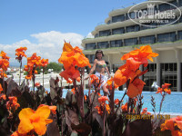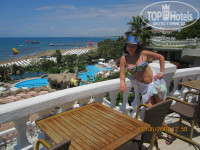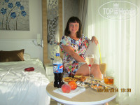 Номер, повторюсь, отличный.Просторный, все новое, чисто, балкон большой (у нас был светлый, т.к.открытый, где перилы резная решетка, но много балконов с бетонной стеной, если посидеть на балкончике, например вечерком, то ничего не видно, а у нас все видно и развлекухи в отеле и город-ночной весь в огнях, красота); 2 кровати- 2х спальная и 1,5,вся мебель в светлых тонах,на полу ламенат, пляжные полотенца сразу были в номерах и тапочки, халатов не было, но говорят можно было спросить на ресепшене, мы не стали, нам не принципиально, на стене в нише плазма, мини-бар: вода,меринда,кола,спрайт,соки(персик,вишня очень вкусно),пиво,орешки,вафли в шоколаде "милка"-всё перечисленное по 2шт -всё бесплатно. Уборка нормально, правда был один косячок, видимо уборщица случайно, наверное, разлив спрайт, вытерла его так,что просто развезла по всему полу, когда мы пришли, мы просто прилипали к полу, но после пляжа и солнца я устала и не захотела идти жаловаться, искать эту уборщицу, я сама перемыла этот пол, для себя же, но не приятно.Полотенце меняли каждый день. Сантехника вся новая, всегда чисто, мыло "ДАВ" жидкое, душевая просторная с двумя лейками, одна в потолке с подсветкой и с разным режимом-прикольно.В общем с номером все ОК.