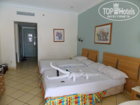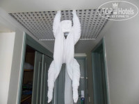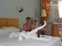 Номер. Номер оказался очень уютным с двумя большими кроватями, красивым выходом на бассейн, что нам не очень мешало, т.к. из-за балкона днем разглядеть происходящее за закрытыми дверями сложно, а вечером можно и шторы закрыть. Телевизор, который был у нас в номере показывал 1 канал, Россия 24, а для ребенка мы нашли украинский Тет с русскими мультфильмами. Кондиционер работал на отлично. Никакого ужасного шума не было, работал на среднем и малом режиме, и иногда мы даже выключали его, т.к. становилось холодно. Румбой у нас был Ахмед - умница, убирался быстро и качественно. Для ребенка крутил фигурки из полотенец. Полотенца и белье менялось без вопросов. При выселении забыла в номере балетки. Вернулась, а он вернул не только их, а еще и телефон мужа, про который я даже не знала. Была в большом шоке, т.к. еще поискать таких честных людей надо.