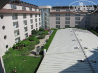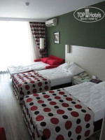2. Размещение. На ресепшен дали заполнить анкеты, и сказали, что размещение будет после 12-00. Так как времени было еще мало, и прочитав тут отзывы об отеле, мы бросили вещи в багажную комнату, переоделись там же, и успев еще и позавтракать, отправились до 12 на море. Сразу после 12 нас заселили. Номер нам достался на 4 этаже с видом на город и горы. К виду без претензий, за что заплатил (в общем, нормальный вид).
