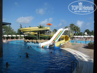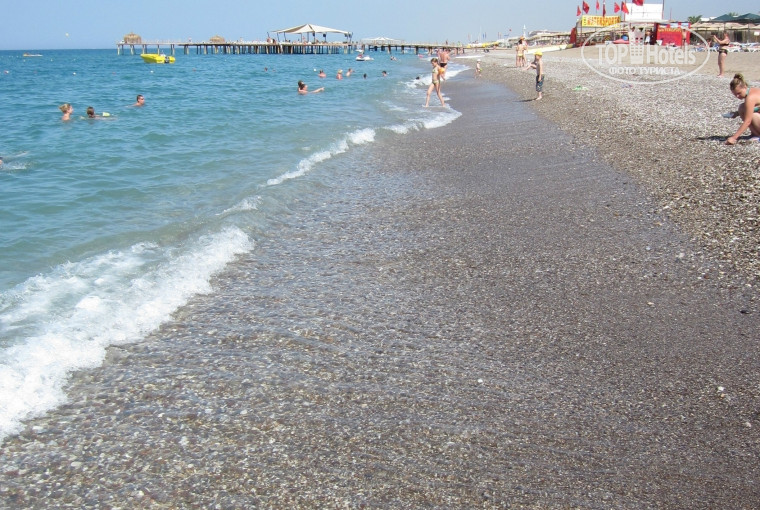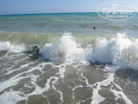 6. Пляж, море и бассейн. Пляж песчаный, заход в море - галька. Лежаков не хватило только в первый день, дальше стали умнее)). Рядом с пляжем Мини-клуб и волейбольная площадка. На пляже также были развлечения от парашютов до бананов (это уже платно). Заход в море довольно резкий - через 3-4 метра от берега под 2 метра глубины. Из 7 дней пребывание на отдыхе 4 дня были волны при которых не все желающие могли насладиться морем. И я так понимаю, это явление здесь постоянное, так что учтите это. Во время больших волн, приходилось купаться в бассейне. Бассейн большой, глубина от 1,45 до 1,9 м. Водные горки также работали, все здорово. Около бассейна работали аниматоры, забавные ребята