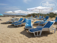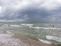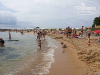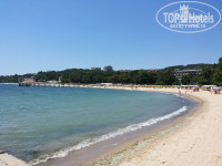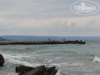 Отдельная тема это пляж. Находится левее от отеля на расстоянии примерно 200-300м, бесплатный, народу оооочень много, если хотите чтоб было меньше нужно пройти ещё 200м по пляжу. Весь пляж заставлен шезлонгами и зонтами отелей 1й линии, если хотите платите по 8-10 Левов в сутки за один шезлонг и столько же за зонт и располагайтесь на них. Ближайший пляж правее через территорию сети отелей Ривьера, на который нас пускали только в непогоду, в жару пускали только с оплатой шезлонга либо зонтика, хотя там же был и бесплатный пляж. В нескольких местах пляжа из земли бил сероводородный источник с тёплой водой, который обладает целебными свойствами, о которых можно почитать в интернете кому интересно.