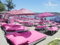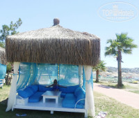 До пляжа пешком идти минут 10-15, горочка конечно очень тяжелая, так же на тер-ии отеля много ступенек, получается отличная тренировка))). Мы всегда ходили пешком, но можно воспользоваться бесплатной маршруткой, которая ездит 3 раза на пляж и обратно в отель. А если вообще лень – то можно остаться в отеле у бассейна, их там 3 штуки. Минус пляжа еще в том, что нет полотенец, со своими алкогольными напитками приходить нельзя, нужно покупать на пляже, но нам все же разрешали), один раз взяли Лонгайленд, 15 лир. Дно моря грязноватое, куча бутылок, банок, палок, не мешало бы конечно все убрать… вода прохладная, но говорят она такая всегда. Пляж один на два отеля, но можно прогуляться вдоль набережной, там тоже есть много бесплатных лежаков.
