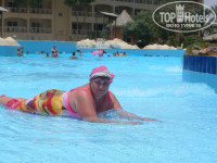 Здравствуйте, всем кто будет читать мой отзыв! На отдых за границу мы поехали первый раз. Очень долго выбирали отель хотелось, что бы было все красиво и уютно, чтобы было чем заняться нашему ребенку (9 лет) остановили свой выбор на Синдбад Аква Отель выбрали все включено клубную систему( желтый браслет), что бы пользоваться аквапарком. Начну с полета летели компанией Трансаэро все замечательно, не успели взлететь, сразу предложили на выбор воду, сок 2 видов и коку. Затем был предложен завтрак на выбор блины или омлет далее чай кофе и времени на просмотр фильма осталось совсем мало, приземление было мягким спасибо пилотам. После прохождения всех формальностей и получения багажа нас по живому коридору встречающая компания Алс Тур вежливые люди в синих в полосочку рубашках проводили до автобуса немного ожидания 15 минут езды и мы в отеле. Разместили очень быстро с номером нам повезло не очень у нас окна выходили на амфитеатр и городскую улицу, поменять возможности не было был большой заезд местных жителей. Номер был чистым убирался каждый день да потом и к шуму привыкли спать не мешало. Питание 3 главных ресторана по одному в каждом отеле завтрак почти везде одинаковый омлет, глазунья, вареные яйца сыр 3 видов, колбаса, маленькие сосиски( мне не понравились), куриные котлетки то же не очень, очень вкусный хлеб и булочки, фрукты, йогурт, хлопья и шарики, блинчики, кофе, чай, какао. Обедать лучше в Аква Отеле или в Аквапарке в отеле через дорогу хуже, что дают на обед обязательно птица(курица или индейка) мясо, рыба или кальмары( не очень жесткие) овощи, салаты, рис 3 видов, макароны, картошка( лучше брать фри или нарезанную дольками или печеную или пюре крупная отварная чаще всего не доваренная), фрукты, выпечка, чай , кофе, напитки как газированные так и что- то типа юпи, алкогольные с 10 утра и до 23 точно. Мне пиво понравилось, а так же ром с колой еще хорошо делают коктейли на пляже в дальнем баре водка ужасная, виски муж употреблял говорил что терпимо, вино мне не понравилось совсем оно никакое. В ресторане на пляже с 11 до12 пекут пончики очень вкусно, но очень медленно и как мой муж сказал жадный египтянин, а так же он жарит бананы в кляре в Бич Резорте дает по 2 штуки в одни руки. Ужины очень вкусные в Аквапарке там при вас на гриле приготовят то, что вы себе наберете фарш, рыбу, курицу или овощи. Море чистое спокойное теплое заходишь в него и выходить не хочется! Пляж суперский мы ходили к дальнему бару там посвободнее и к бару поближе. Мороженное с 10 утра на пляже в дальнем баре в ресторане на берегу и в баре в Аквапарке и в Аква Отеле у бассейна. Мы были на трех экскурсиях спасибо большое нашему отельному гиду Магдалине за дельные советы. Во второй день сходили в турецкую баню было супер! 1 экскурсия - морская прогулка с посещением острова Оранж-Бей, плаванием в открытом море, обедом и рыбалкой день провели чудесно яхта «Морской принц» была почти новенькой и чистой и гид Яхья очень интересно рассказывал. 2 экскурсия – Сахара – парк гид Евгения впечатлений много приехали в отель уставшие, но довольные на эту экскурсию обязательно легкую рубашку с длинным рукавом и легкие брюки и арафатки будут предлагать диск не советую качество не очень, ну и поездка по магазинам берите больше денег. ИТОГ отпуск мы провели замечательно, первый блин не оказался комом! Если 