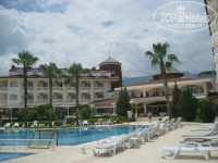 Территория отеля небольшая, много зелени, чисто. Есть бассейны (детский совсем небольшой), рядом навесы с лежаками. Так же есть беседка, где проводятся занятия с детьми и небольшая детская площадка.