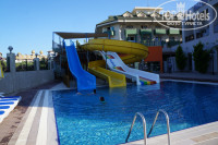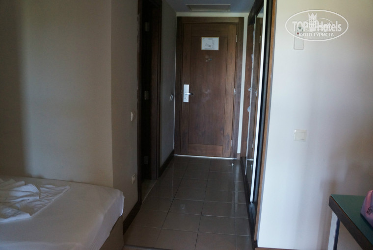 Отдыхали с 20 по 29 июня ( 9 ночей), 3 взр.и реб. 7 лет. с вылетом на следующий день, больше на данный момент ничего не было, поэтому полетели! Номер 1208! Начнём с плюсов: хорошое питание, всё в рабочем состоянии. Минусы: напитки из автомата типа соки ( химия), дверь купе разделявшая спальню и детскую не закрывалась до конца( смысл в этом семейном номере, из- за которого и поехали в данный отель?) , матрасы скрипят, могли бы раскошелиться на них. По русски на рецепшене не говорят. В отеле отмечали день рождения, подошла к нашей гастрелейшен ( работает только днём), с её слов нам полагалась ваза с фруктами, она отметила , сказала принесут, ничего не было. В море водоросли у берега и народу тьма как в муравейнике, тоже и в бассейне. До моря минут 5-6 пешком вдоль речки, не сложно, но всё равно больше одного раза в день не пойдёшь. Если любите поесть и просто обожаете Турцию , то смело можно ехать. Для полноценного отдыха на море не подходит, но это сугубо моё мнение.Море грязного цвета и постоянно на расстоянии 1-2 метров кто-то плавет пару раз меня задевали ногами.