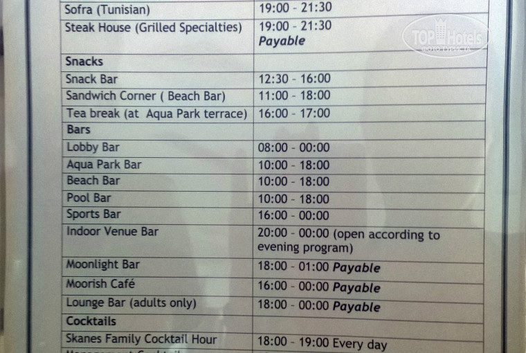 Из бесплатных есть лобби-бар, спорт-бар (работает по вечерам, уютный), Indoor Venue бар (по вечерам под вечернюю анимацию) и небольшие бары на пляже и возле бассейнов.