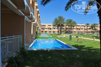 Территория не маленькая, довольно зеленая и ухоженная. Есть два симпатичных внутренних дворика. Две зоны со спокойным и активным бассейнами (активный с большими горками). Шезлонги в том числе и на травке стоят, мне такое нравится. Так же много маленьких приватных бассейнов вдоль здания.