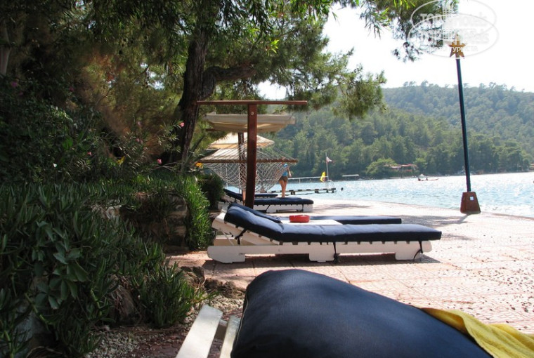 2. Пляж - 5 баллов! Как я уже писал, территория отеля довольна большая, основная часть расположена на выступающем в море полуострове, по ВСЕЙ территории отеля соприкасающеся с морем расположен на мой неискушенный взгляд великолепный пляж! Каменные плиты (как мне показалось не сильно нагревающиеся на солнце, м.б. материал специальный) шириной от 3 до 5 метров и у самого входа в море мелкая (около 10 мм в диаметре) Гладкая галька которая совсем не раздражает ноги а массирует их! Есть три насыпных песочных пляжа, но смысла я в них не видел, на них мне не понравилось. Везде лежаки. Т.к. пляж протяженностью около 2 км, то места свободного ПОЛНО, куча свободных лежаков, гамаков, подвесных лежаков. Полно открытых душей с пресной водой, везде установлены баллоны с питьевой водой. Везде чистенько, т.к. постоянно убирают. Резюме - пляж великолепный.