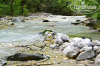 Сам отель размещен у подножия горы, поэтому сосновый свежий воздух, вам обеспечен. До пляжа идти минут 5, по дороге находится не большой магазинчик, так что если желаете какие-то напитки или фрукты, всегда пожалуйста.