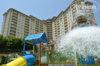 В прошлом году я с женой и двумя детьми отдыхали в отеле на первой береговой линии Махмутлара. Вечерами прогуливаясь по улочкам любовались огнями необычного отеля высоко на горе. Наведя справки я узнал, что это Голд Сити и цена пребывания в нем не сильно отличается от четверки на первой береговой линии. Так мы начали мечтать о поездке в этот отель в 2014 году. И вот в конце июня мы летим в Махмутлар, едем по знакомым дорогам Алании в Голд Сити. Впервые организацией моего отдыха занимались настоящие профессионалы из Анекс Тура. Никакой Coral и JTI, которые раньше меня обслуживали и рядом не стоят. Ребята ничего не навязывают, профессионально проводят презентации и идут навстречу посетителям. У меня была оплачена вилла, она дешевле чем проживание в основном корпусе. Но так как она оказалась далеко, мы на вторые сутки за доплату перебрались в основной корпус. Оно того стоило, т.к. живя в отеле, стараясь все успеть, каждый день набегали по несколько километров. Территория комплекса настолько велика, что никаких очередей я не встречал. В пол девятого утра в тренажерном зале было пару человек и я с удовольствием пробегал трешечку на беговой дорожке после чего шел в сауну и в бассейн, там тоже за время моего пребывания встречал несколько человек. В половине десятого утра будил свое семейство и мы отправлялись на завтрак. Удивило, что независимо от времени посещения ресторана всегда было достаточно продуктов. После завтрака мы уходили в аквапарк и там были до обеда. В пол четвертого уезжали на пляж и были там до восьми вечера. Потом возвращались в отель с последним автобусом с пляжа, ужинали и шли на анимацию. Очень понравился ресторан по программе алякарт, посетили на 16 этаже бар Зодиак, сделали там хорошие фотографии. В отеле 40% русскоязычных и 60% иностранцев. Поразило отсутствие "совковости", которое присутствовало в маленьких аланийских отелях. Даже как-то взгрустнулось по этому поводу. Что касается экскурсий, в прошлом году брали морскую экскурсию на яхте, а так же ездили на джипах в Грин каньон - очень понравилось, всем советую. В этом году посетили крепость и пещеру Дамлаташ, сами приехали на маршрутке в центр и купили билеты на входе, заодно затарились вещами в Вайкики. Отдых удался, теперь буду мечтать о Греции :)
