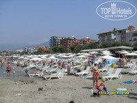 Пляж близко, через дорогу по подземному переходу. На пляже бар, лежаки и зонтики платно. Лежак + зонтик -2 $ на день. Но мы лежаки не брали, загорали рядом на полотенцах (почитав предварительно отзывы, взяли с собой полотенца). Пляж песчано-галечный, но с обеих сторон камни. Вход в море не очень большой, но всем хватало место. Море чистое, прозрачное. В наш приезд были небольшие волны, но нам это не мешало, даже наоборот.