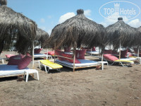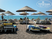 До городского пляжа минут 10 пешком, на нем отдыхают все подряд: огромное количество курдов, собак, и немного нормальных людей. До пляжа отеля (Mimoza Beach) несколько раз в день ходит бесплатная маршрутка (5 минут езды). Рекомендую по возможности посещать этот пляж, т.к. на нем только отдыхающие отеля и лежаки с матрасами в свободном доступе; атмосфера в целом также приятная: музыка, можно даже расслабиться под шатрами. Перед входом на пляж несколько приспособлений для занятий спортом, не забывайте о них.
