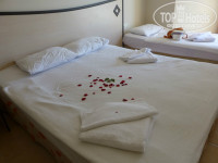 2-х спальная кровать и еще 2-х ярусная для детей. Но 2-х ярусная кровать оказалась криво собрана и спать на верхнем ярусе нельзя. По росту подходит детям до 150 см. Пока мы гуляли, нам поставили еще 1 односпальную кровать - для дочки. А сын спал на нижнем ярусе. При этом, пока нас не было, кто-то видно перепутал номера и в замке оказался сломанный ключ. Муж пошел разбираться, пришел парень и в течении 2 часов заменил замок. Взяли сейф - говорили, что 30$ за 10 дней, но мы "договорились" о 25$.
