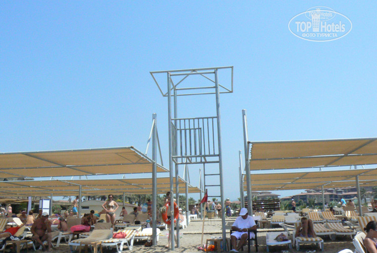 Пляж и море. Мелкий песочек на пляже, переходящий в мелкую гальку в полосе прибоя. Коралловыми тапочками почти никто не пользовался. Вход в море почти сразу имеет глубину по пояс и далее в рост (многие родители отдыхали с детьми у бассейнов). Глубина моря до буйков от 2 до 2.5 метров. Море достаточно спокойное и теплое (около +25). При нырянии в маске можно увидеть мелких рыбок. На пляже достаточное количество лежаков под тентами. Если вдруг не обнаружили матраса - попросите служителя. Я приносил матрасы со склада сам, пока это не заметил служитель - он попытался мне объяснить что это его работа и спрашивал куда именно принести матрасы. К вечеру он собирает все матрасы с пустых лежаков, если на них нет полотенец. Оставлять на них бутылки с водой или камушки бесполезно - бутылки расцениваются как мусор, камушки будут заботливо уложены обратно на лежак, но матрас он унесет! (матрасы чистят от песка и складывают на ночь) На пляже всего две кабинки для переодевания, чего не хватает.