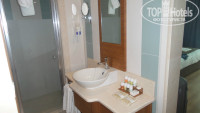 5. Номера. Даже не недостаток, а очень странный дизайн и зонирование. На вкус и цвет понятно товарищей нет. Но делать открытый санузел этот смело. Даже не могу это объяснить. Размеру фото поймете)) Просто получается, что заходишь в номер и видишь раковину))) а на противоположной стене зеркало. То есть выходишь из душа - дверь кстати стеклянная матированная, а тому кто лежит на кровати тебя видно полностью, и хорошо если там муж лежит, а если ребенок))) понятно, что ко всему можно приспособиться, но как-то это странно. Слава богу, хоть туалет обычный.