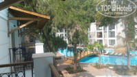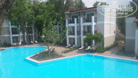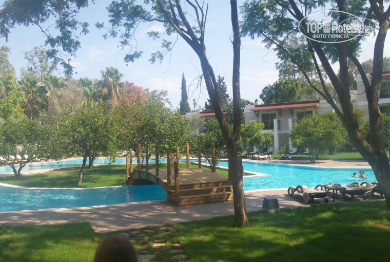 6. Территория. Большая, достаточно ухоженная. Есть три центральных взрослых бассейна и один большой детский. На территории еще несколько достаточно больших бассейнов возле бунгало. Минус в том, что деревьев много , а цветов мало))) а с учетом засохших пальм у бассейна пейзаж сначала несколько удручает, но думаю что это болезнь первого года. Кроме того есть пара прекрасных полянок и на остальной территории пальмы не засохшие))))